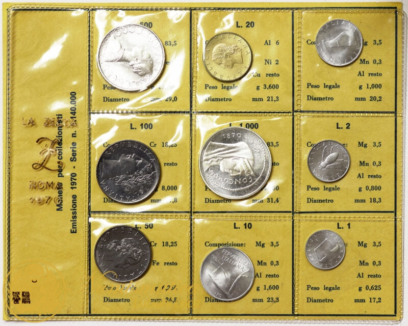 ITALIA 1970 : Serie divisionale 9 valori Fdc