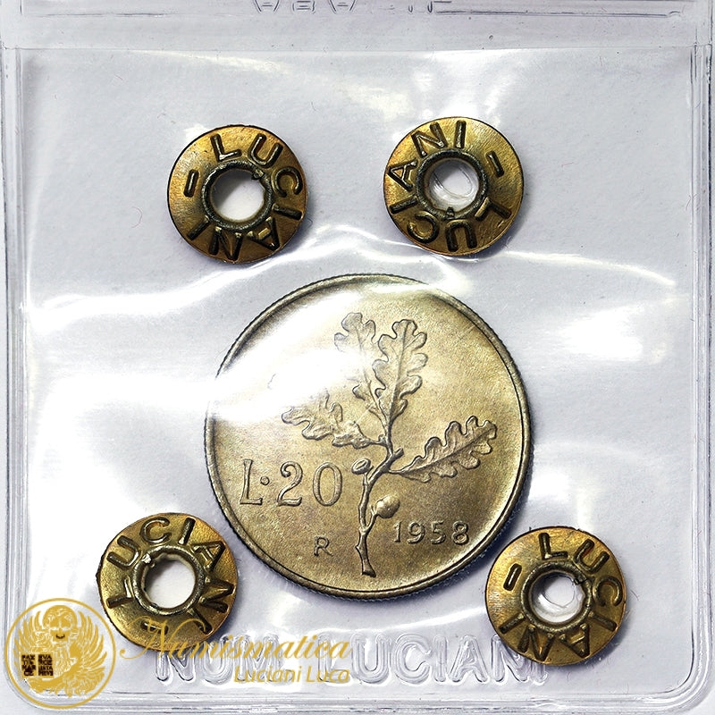 ITALIA 20 Lire 1958 Ramo di Quercia Fdc #P252