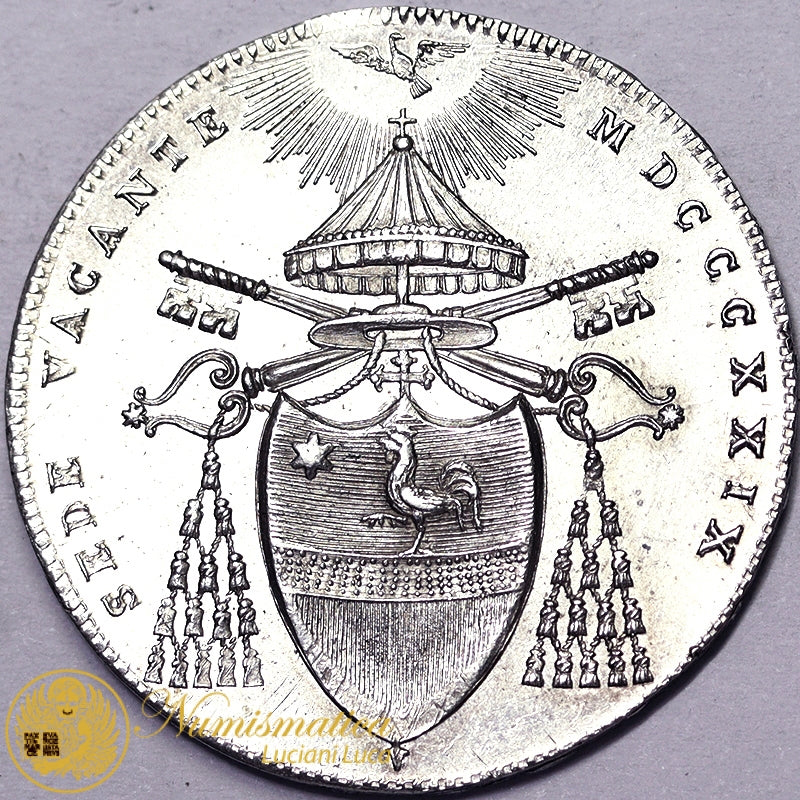 STATO PONTIFICIO Sede Vacante MEZZO SCUDO 1829 Zecca di Bologna Ag Spl/Q.Fdc RR #PV352