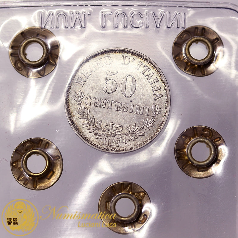 VITTORIO EMANUELE II 50 Centesimi 1866 Milano Valore Ag RARO Q.Fdc/Fdc #PV219