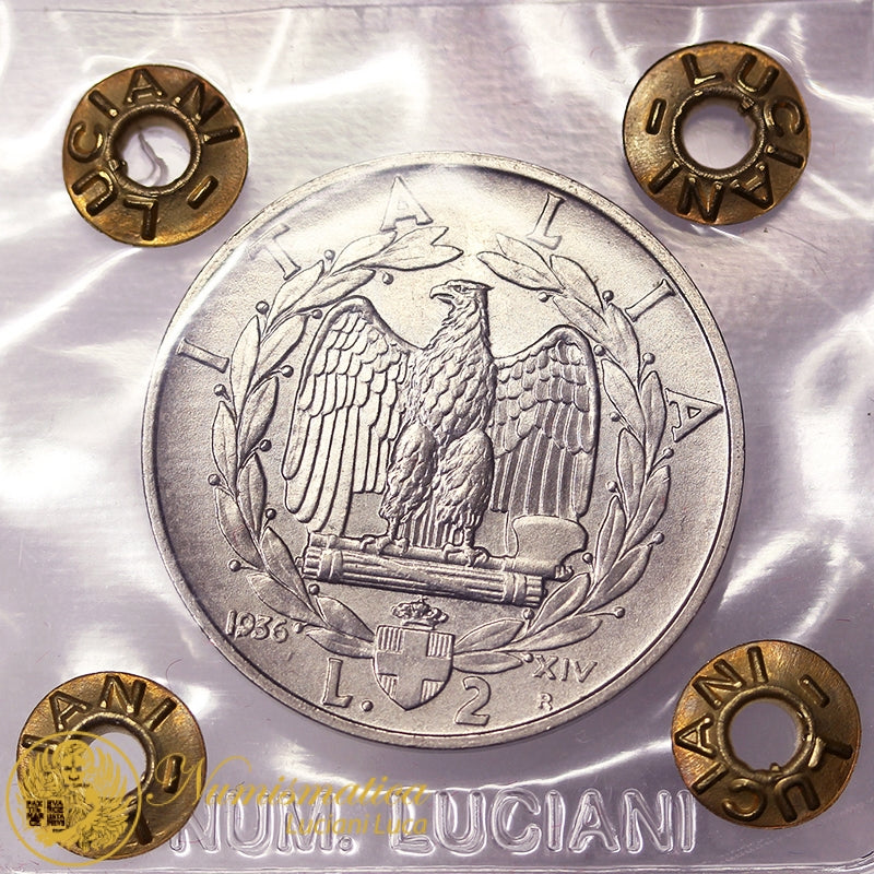 VITTORIO EMANUELE III 2 Lire 1936 Impero Spl RARO #PV276